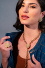 O Anel Cravejado Shine Dourado é o brilho absoluto em versão compacta e poderosa! Com mais de 170 cristais aplicados manualmente, um a um, cada detalhe valoriza o luxo do artesanal e transforma o acessório em um verdadeiro statement de presença e elegância.